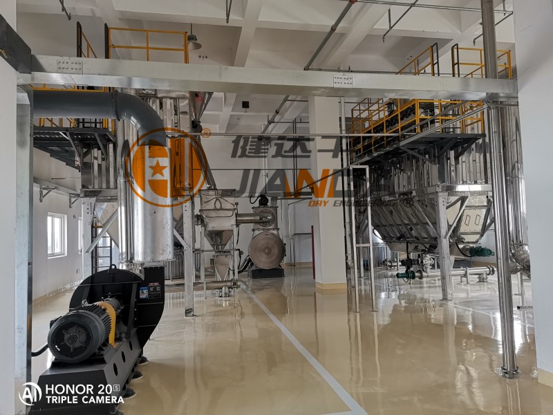 此公司主營豌豆及其他蛋白、淀粉及其制品、膳食纖維、醫(yī)用蛋白的研發(fā),生產(chǎn)和銷售??紤]到此次物料為豌豆膳食纖維,需要其最終成品具有良好的持水性、乳化性、懸浮性、增稠性和膨脹力,使其運用于烘培食品、肉制品、營養(yǎng)補充等食品中,健達研制節(jié)能環(huán)保閃蒸干燥生產(chǎn)線,為豌豆深加工把好最后關(guān)卡。